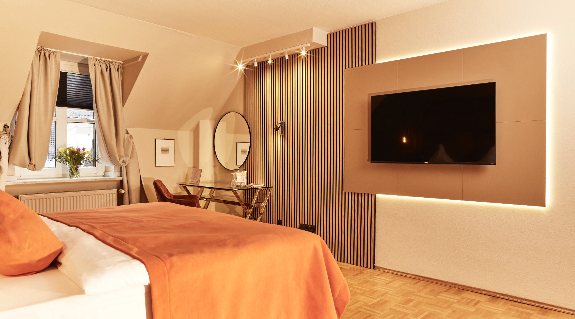 Nach einem erlebnisreichen Tag einfach die Füße hochlegen. Ganz entspannt die Augen schließen und erholsamen Schlaf finden. Ganz gleich, ob Sie geschäftlich, privat oder für einen kurzen Städtetrip hier sind – unsere Superior Zimmer sind der perfekte Ausgangspunkt. Genießen Sie die Ruhe und den Komfort, den unsere Superior Zimmer bieten, und tanken Sie neue Energie für Ihre Unternehmungen in der Stadt. Willkommen im idealen Rückzugsort für jeden Anlass.